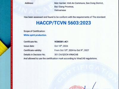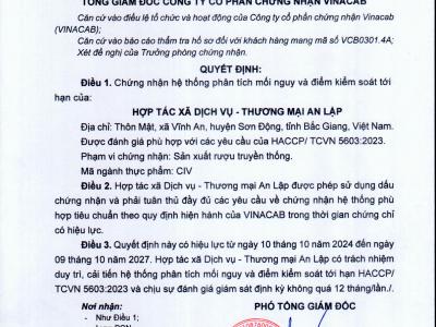 Chứng nhận HACCP ( triển khai thành công hệ thống phân tích mối nguy và kiểm soát điểm tới hạn)