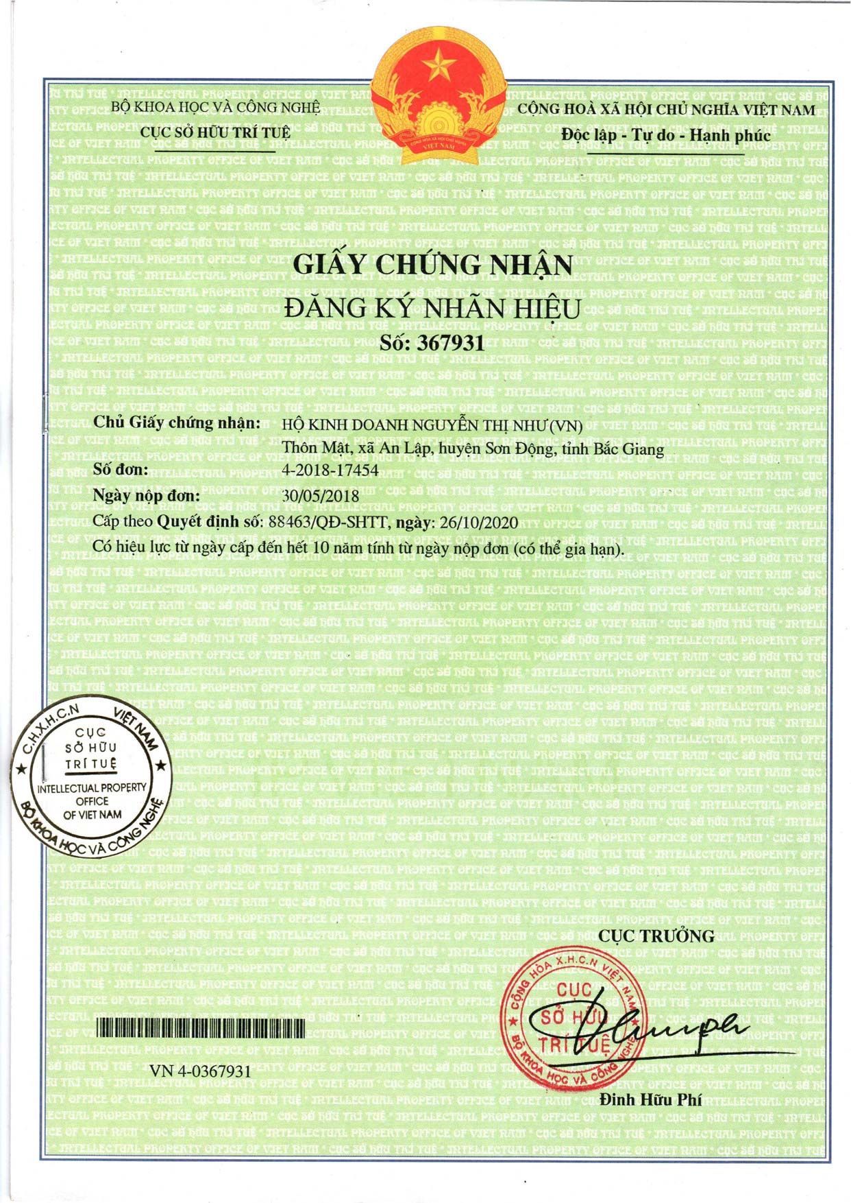 Giấy chứng nhận đăng ký nhãn hiệu